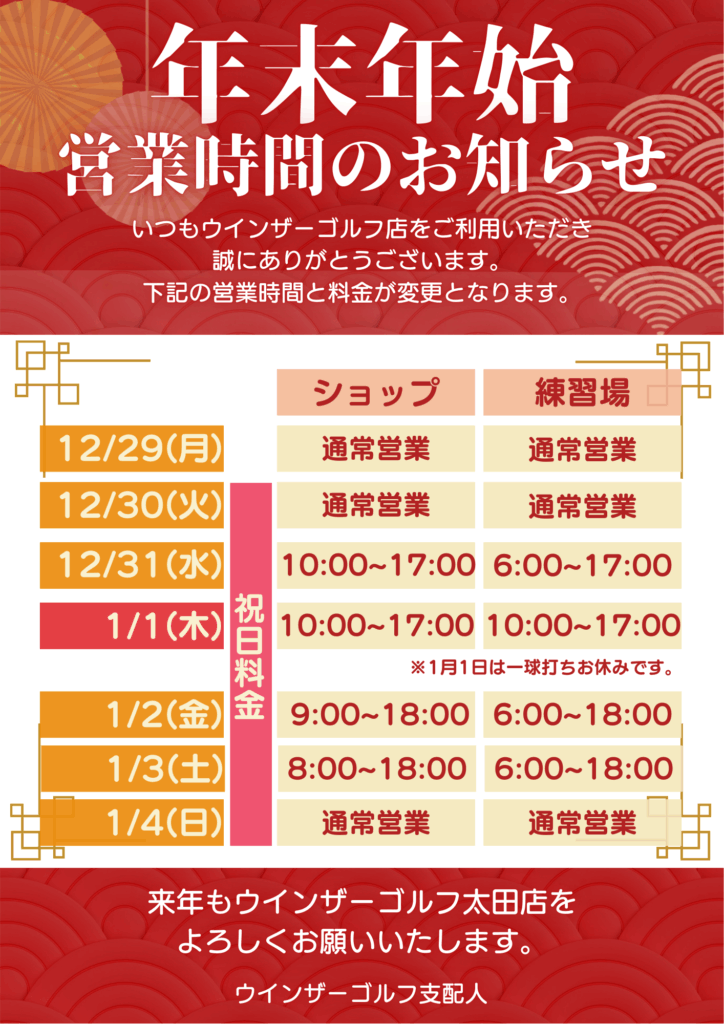 いつもウインザーゴルフ太田店をご利用いただきありがとうございます。